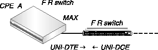In this example, the MAX has a nailed connection to customer premises equipment (CPE) and also has a UNI-DCE interface configuration to that equipment. Figure 4-7 shows the connection.