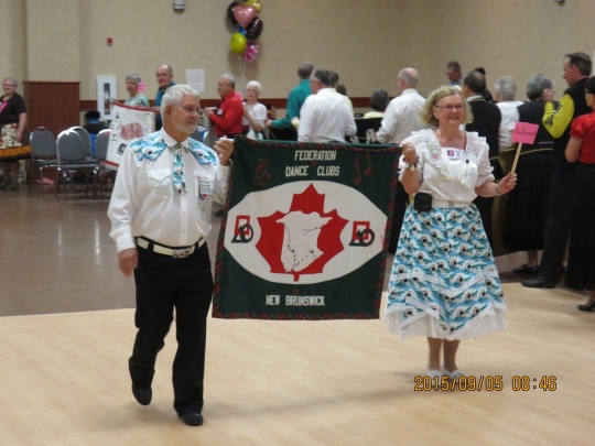 The Canadian Square and Round Dance Society held its 2015 AGM in Lacombe, Alberta, calculated to coincide with the Alberta Annual Square and Round Dance Convention. Maritimers were prominent, as Past President couple Bob and Inge Ruohoniemi (Nova Scotia) and current President couple Eric and Dianne McCormack (New Brunswick) attended the AGM and also participated in the Convention Banner Parade. Want to know what goes on at a Society AGM? Click here for a summary.